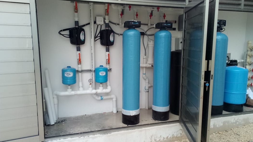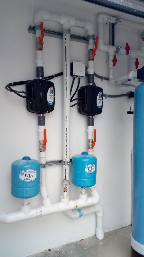 Suministro e instalación de equipos de tratamiento de agua con suavización y bombeo a servicios generales con bomba de velocidad variable.