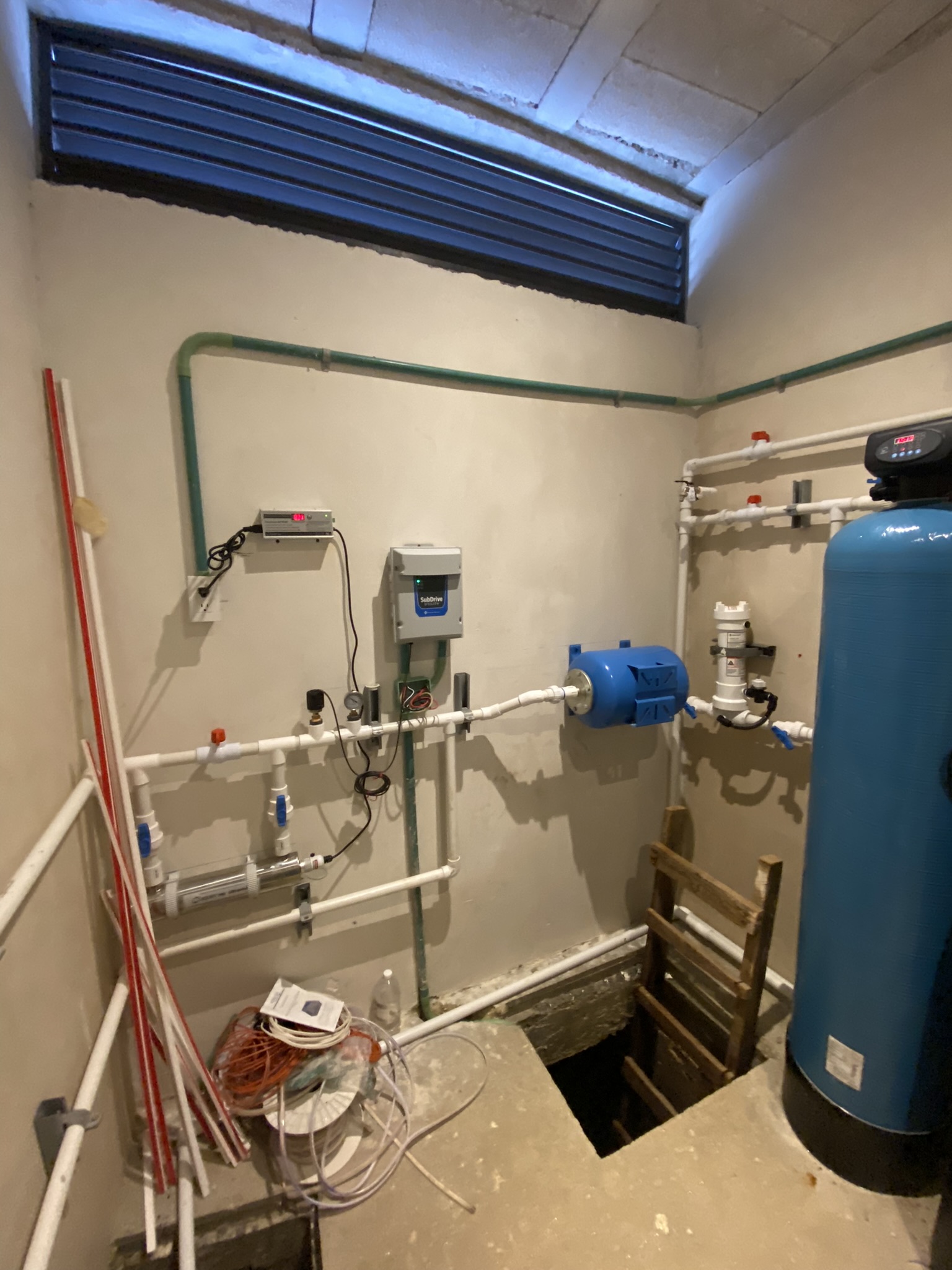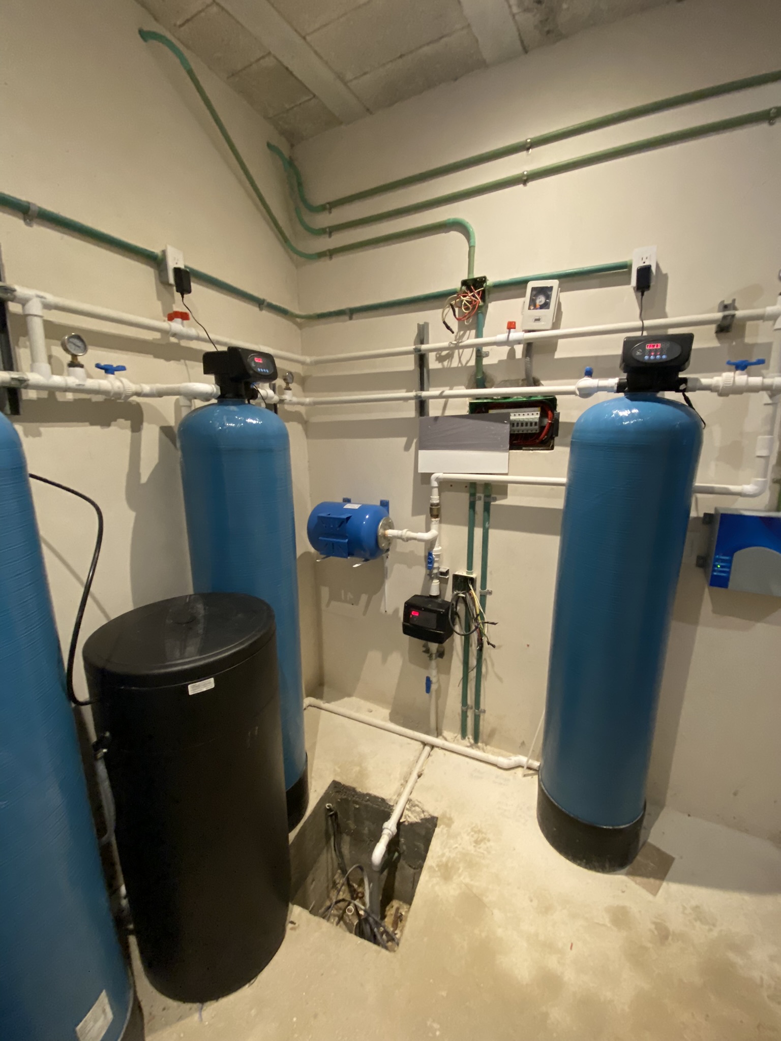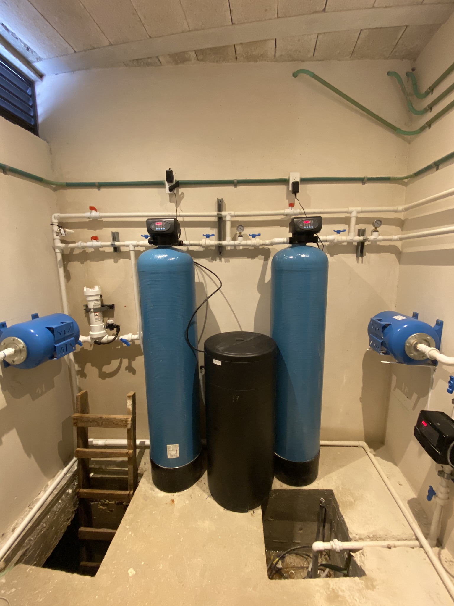 Suministro e instalación de equipos de tratamiento de agua con suavización y bombeo a servicios generales con bomba de velocidad variable.