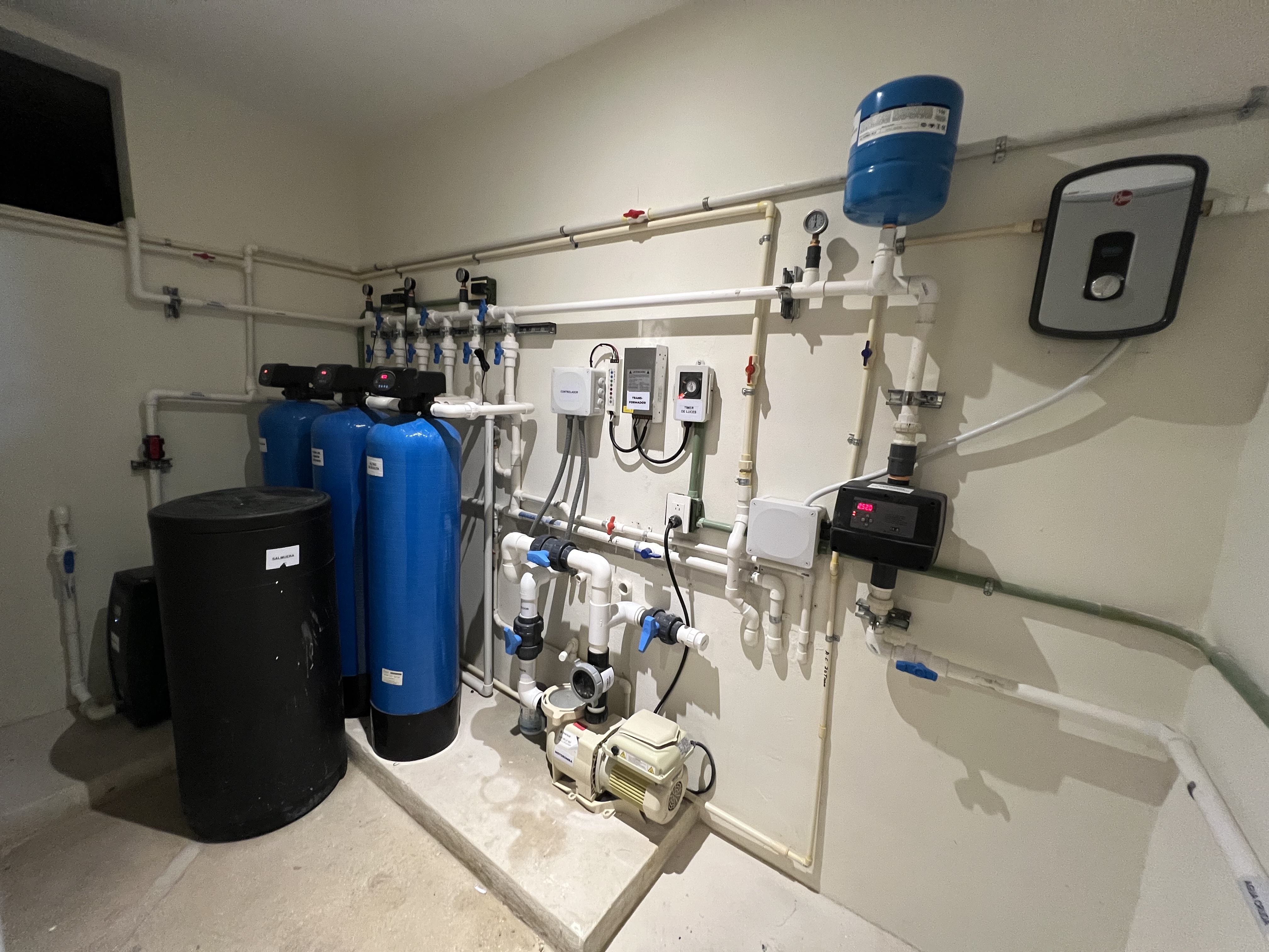 Suministro e instalación de equipos de tratamiento de agua con suavizador y bombeo trasvase de velocidad variable.