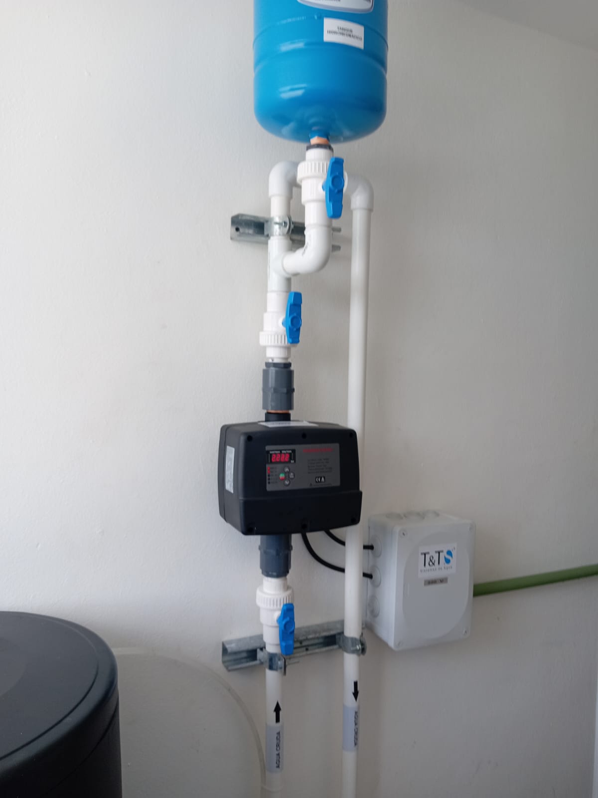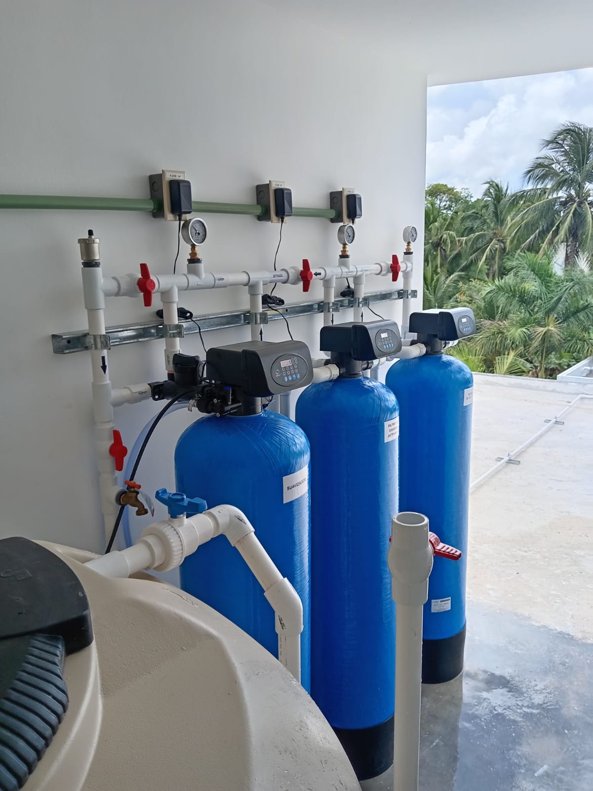 Suministro e instalación de equipos de tratamiento de agua con suavizador y bombeo trasvase de velocidad variable.