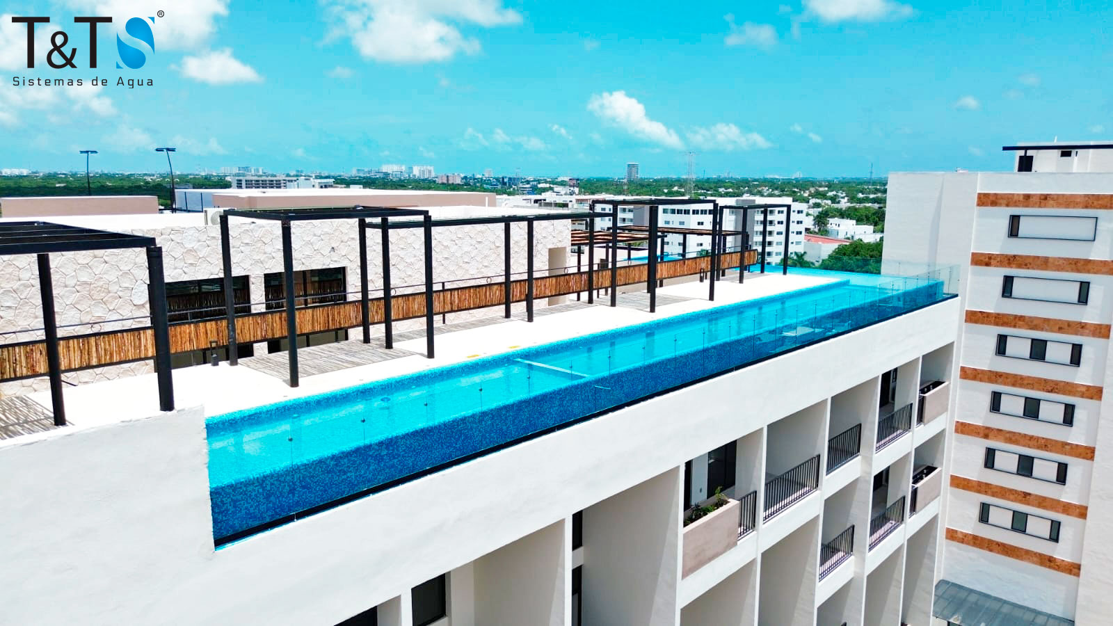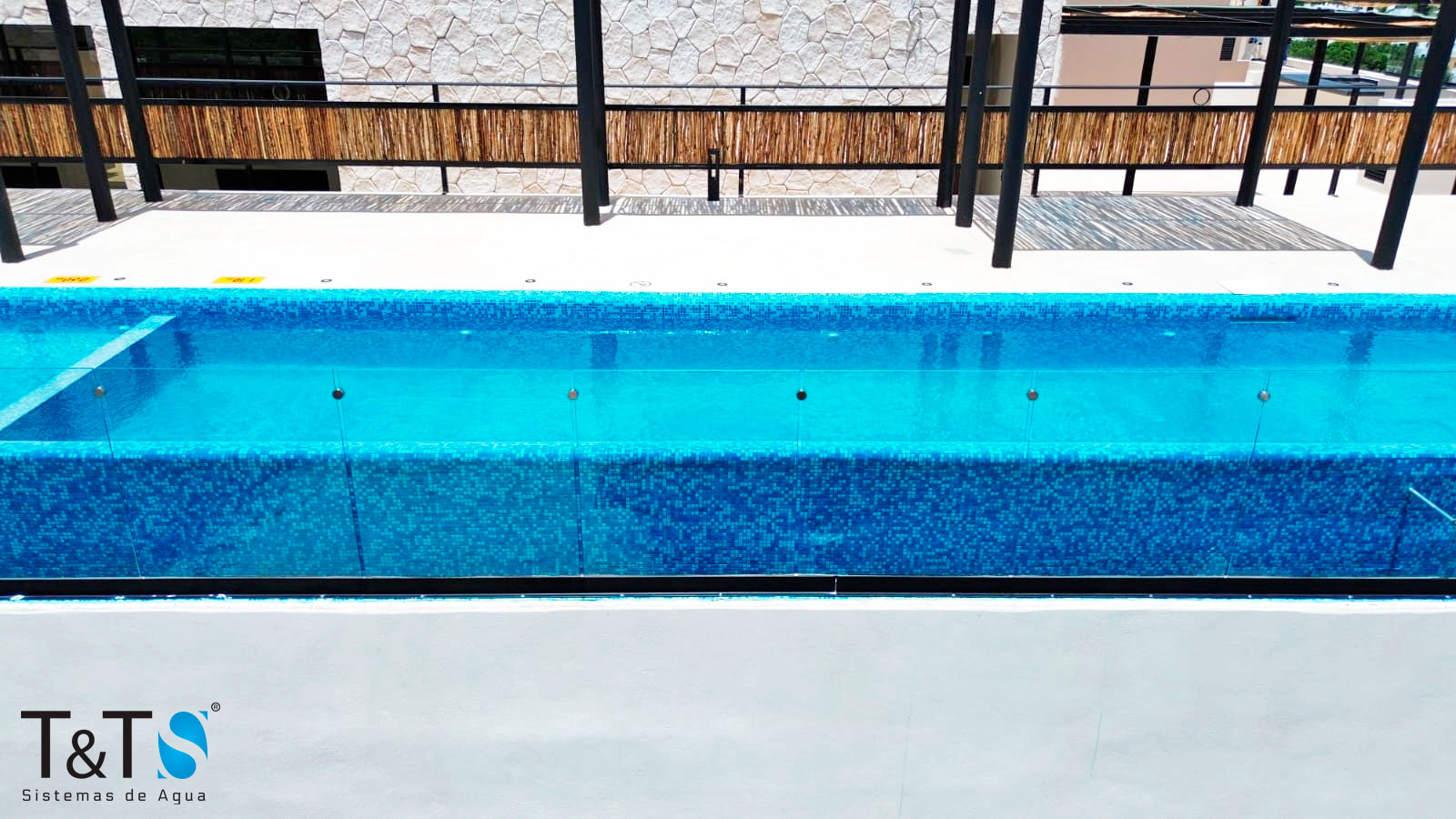 Suministro e instalación de sistema de filtración ecológica Maxfil con efecto infinity e iluminación RGB con control automático.