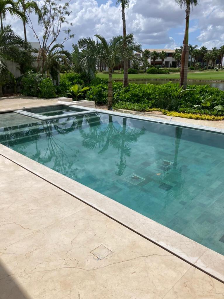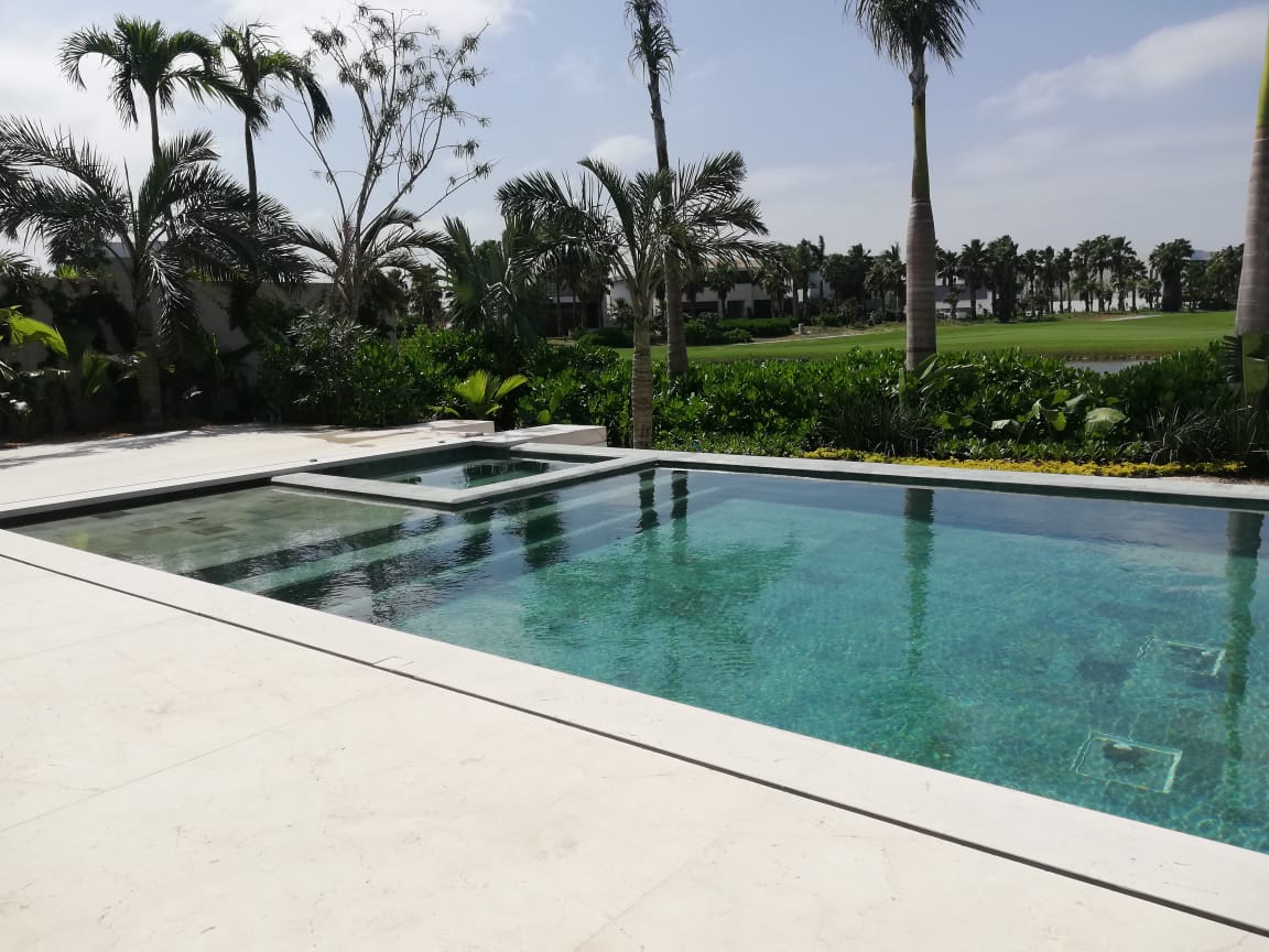 Suministro e Instalación de sistema de Filtración tradicional con efecto infinity, con bomba de velocidad variable, sistema se automatización con control por aplicación, iluminación color y calentamiento.