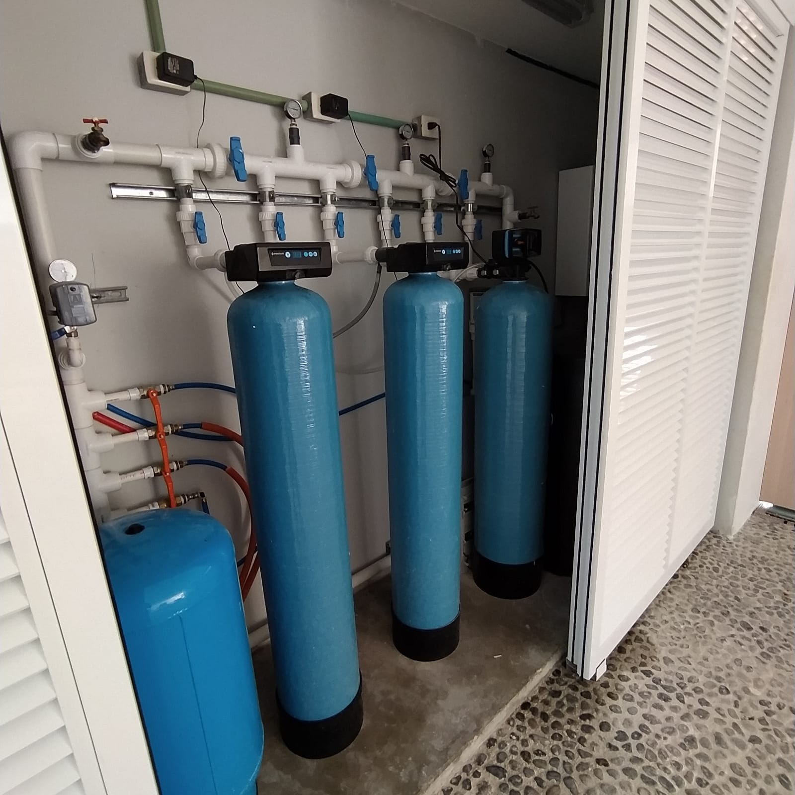 Suministro e instalación de sistema de tratamiento de agua con suavizador, sistema de bombeo a servicios generales con bomba de velocidad variable.